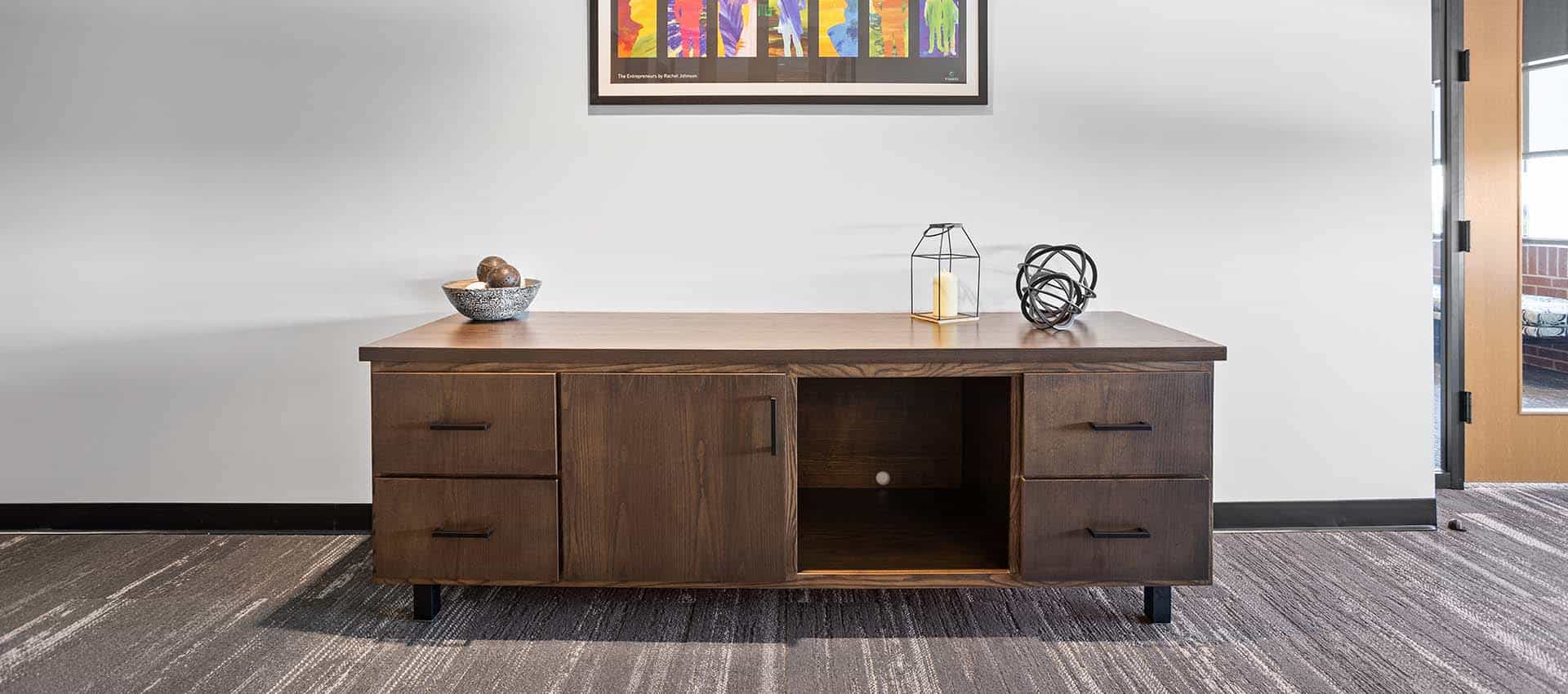A high quality table, desk, or bench, deserves high quality furniture to complement it. Let us know if you’d like for us to design/build a credenza, stool, bookcase, or reception desk to match your other product!