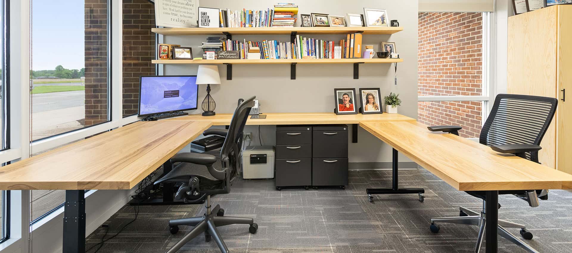 Good news!! Solid wood tops can come in many different shapes, dimensions, and finishes. Here at PD, solid wood shelving has been a unique product offering we provide that most furniture manufacturers do not. Essentially another tabletop to match existing furniture, solid wood shelving is held up best with industrial metal brackets and provides unique design elements that complement any learning/working space. All of our shelving can be manufactured in the same species, stains, and thicknesses of our tabletops. The choice is yours!