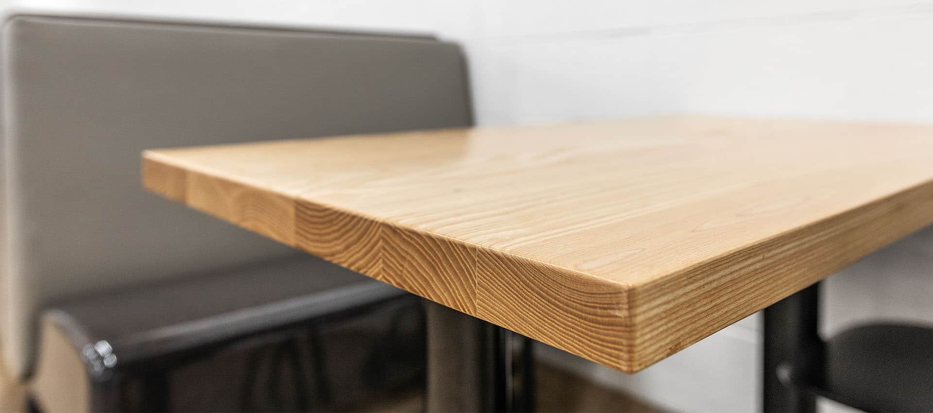 Solid wood tabletops communicate warmth, comfort, and a sense of belonging. Between our 6 different standard species and 8 standard stains, we will work with you to find the absolute perfect combination for your space. Our wood tops are beautiful, versatile, sustainable, durable, and offer a return on investment. In 10-15 years when your top starts to show normal wear and tear, send it back to us and we will refinish it for a fraction of the cost of providing a full new table. With 10 years of experience in wood manufacturing, you can expect quality in craftsmanship and service. We also have a high capacity for growth on the production floor – no order is too big!